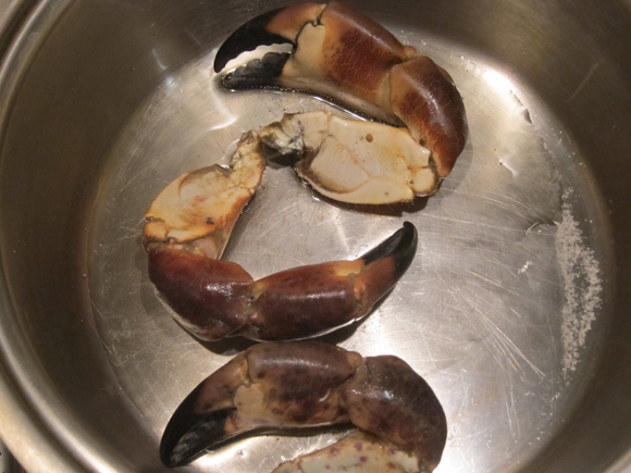 The Crab Claws sauteed briefly in some Olive Oil, then cooked in the broth for roughly ten minutes.