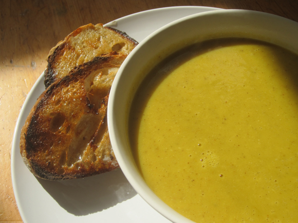 The warming, creamy bowl of soup served with Toasted ‘Hackney Wild’ Sourdough from the E5 Bakehouse.