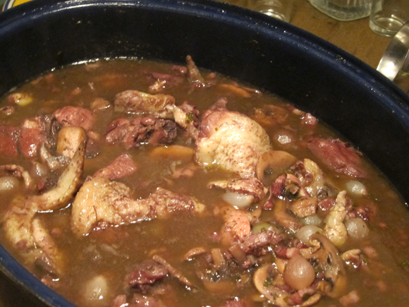 meals winter New Years’ Eve meal by Kevin on4 January, 2011 Comments 0 A delicious meal to see in the New Year prepared by Kubli, of Coq au Vin and Potato and Spinach Gratin.